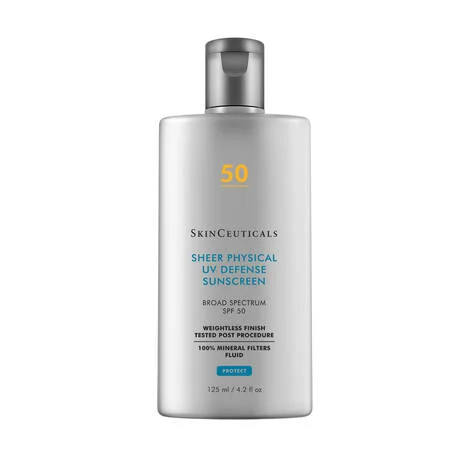 Sheer Physical UV Defense SPF 50 is an ultra-sheer, 100% mineral sunscreen that provides broad-spectrum protection with a transparent, weightless finish. Formulated with Titanium Dioxide and artemia salina, a plankton extract, it helps boost the skin’s natural defenses against UV and heat-induced stress, making it ideal for sensitive skin. This silky fluid spreads easily, dries quickly, and leaves no residue.