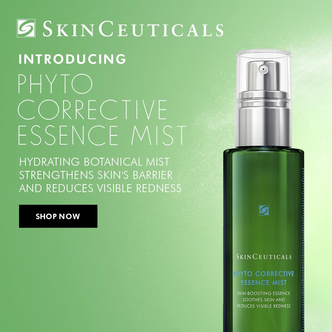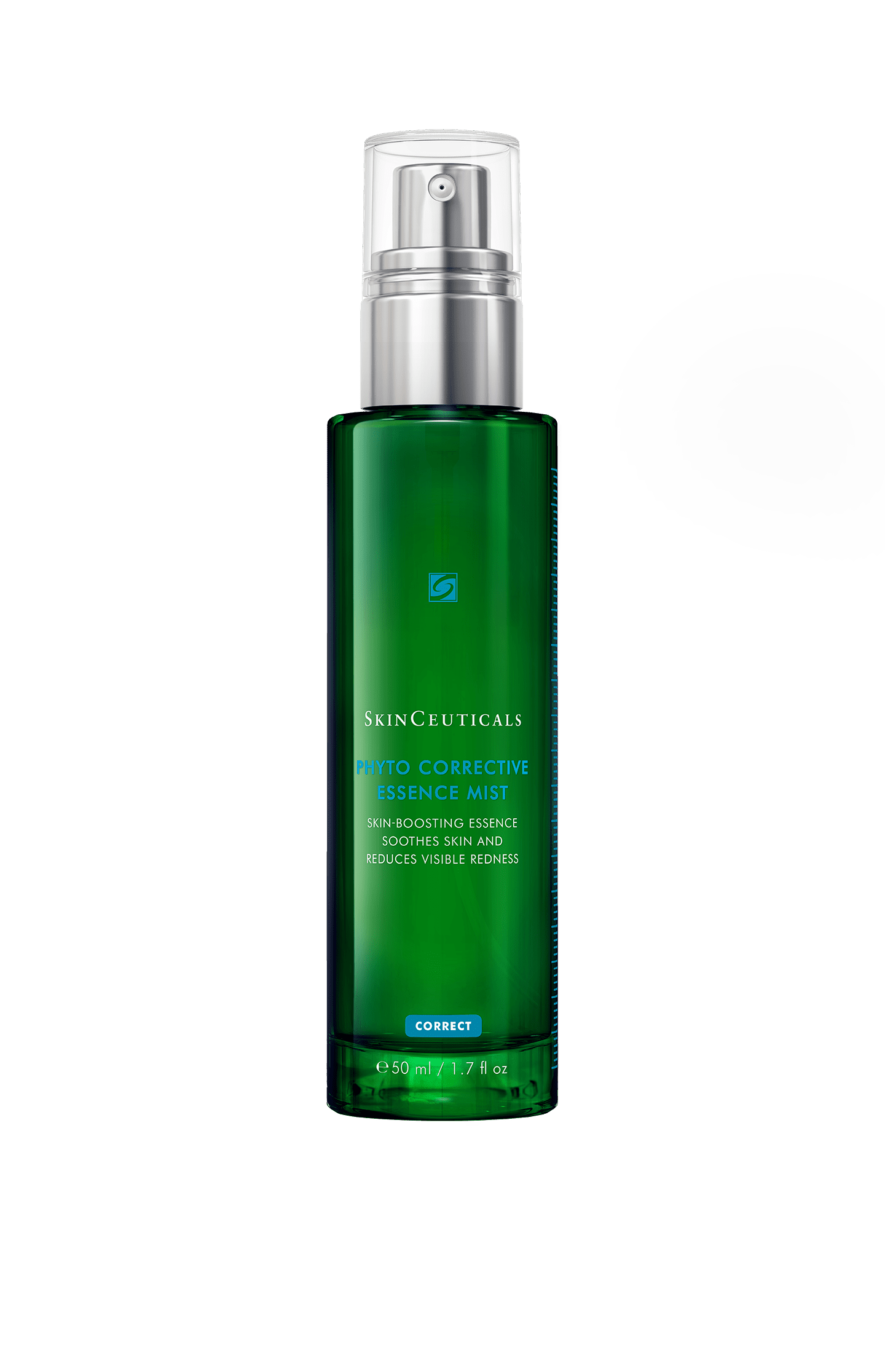 SkinCeuticals Phyto Corrective Essence Hydrating Mist is a soothing, hydrating mist that helps reduce redness and strengthen the skin’s barrier in a hygienic, touchless spray format.